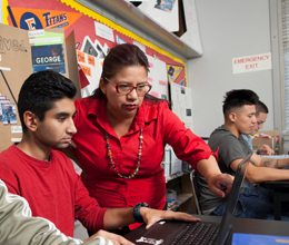 Erica Lundy MA ’15 (Elementary Curriculum and Instruction) teaches in a classroom where 11 different languages are spoken. President Barack Obama named her the science recipient for Presidential Award for Excellence in Mathematics and Science Teaching.
